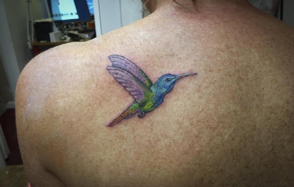彩色的女神纹身小清新风格蜂鸟纹身图片