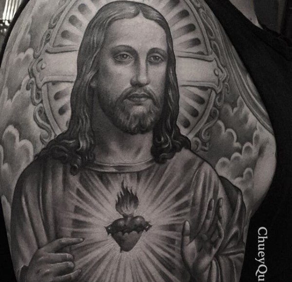 黑灰色经典宗教图像纹身神话人物纹身图案