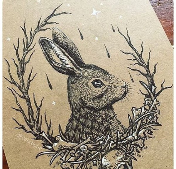 黑色的点刺纹身动物图案纹身简单手稿兔子图案