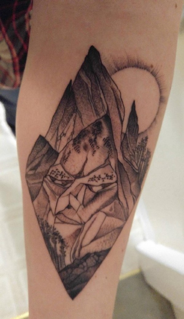 手小臂膀上的菱形形状的睡觉的岩石巨人纹身图片