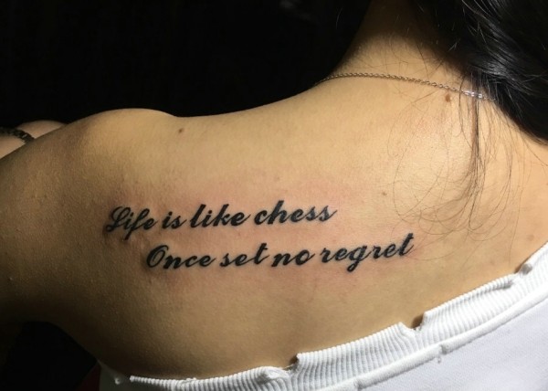 女生背部时尚英文纹身刺青