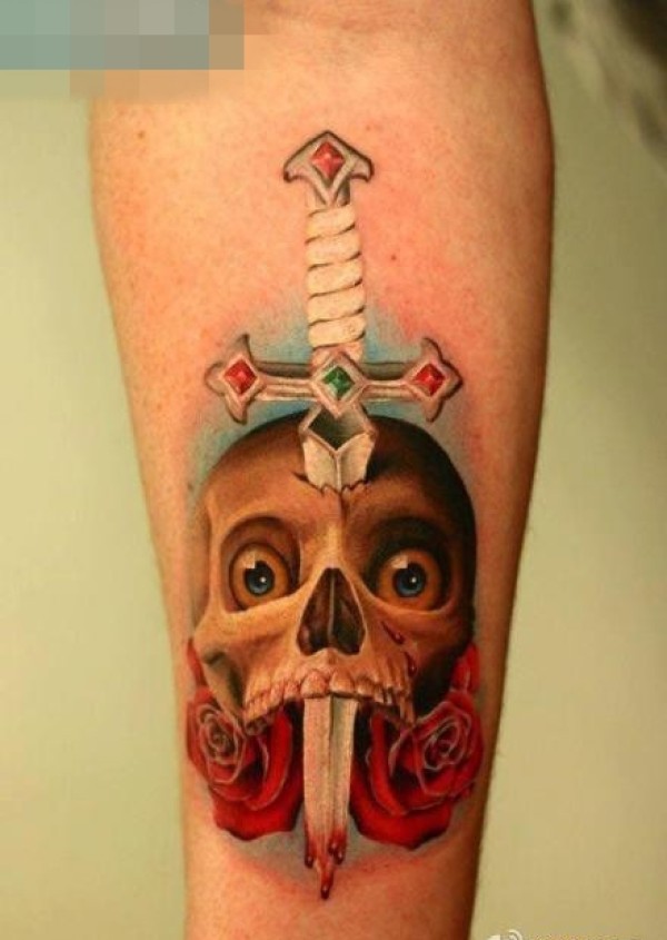 手臂经典超帅的匕首与骷髅纹身图案