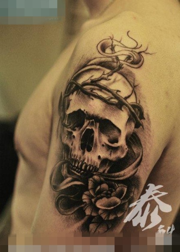 个性手臂悲伤的骷髅纹身图案图案图片_骷髅纹身图案大全_纹身图吧