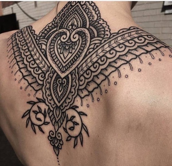 经典的黑色曼陀罗图案纹身几何花纹身图案