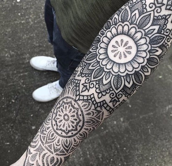 经典的黑色曼陀罗图案纹身几何花纹身图案