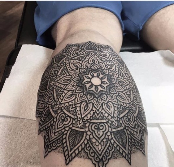 经典的黑色曼陀罗图案纹身几何花纹身图案