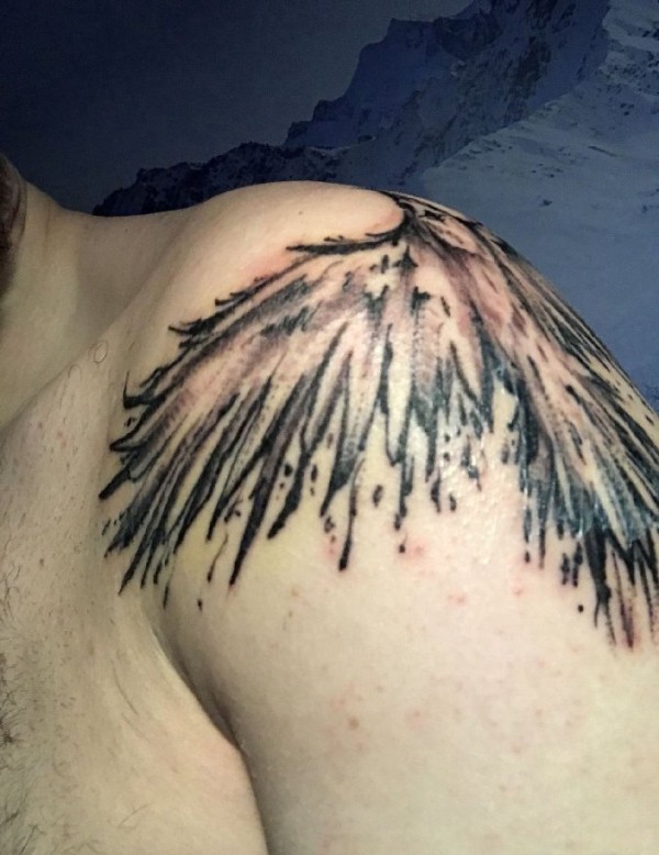 男性左手臂上黑色三只眼乌鸦纹身动物图案纹身