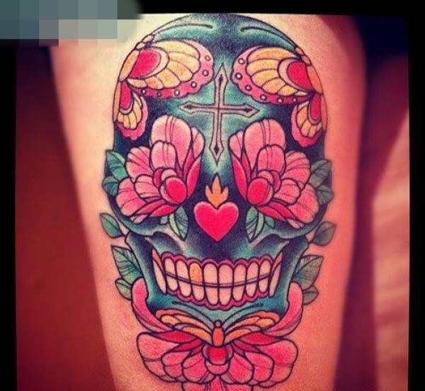 女生腿部漂亮的school骷髅纹身图案