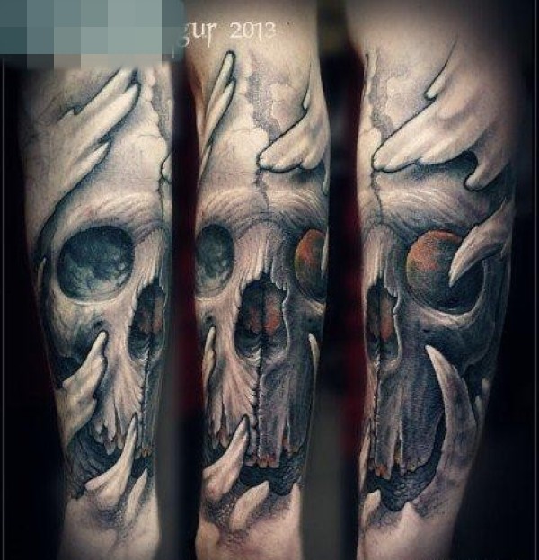 手臂潮流帅气的欧美写实骷髅纹身图案