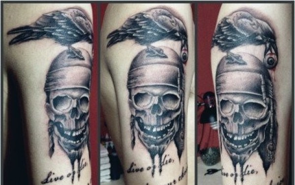 手臂帅气超酷的乌鸦骷髅纹身图案