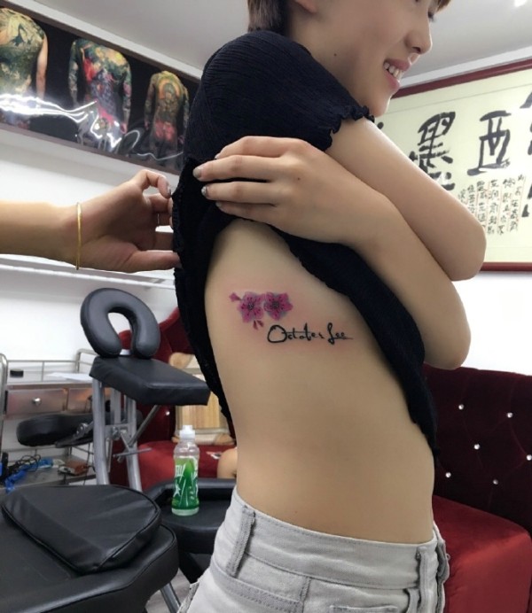 分享一款腰部时尚性感的蝶恋花纹身图案_腰部纹身图案大全_纹身图吧