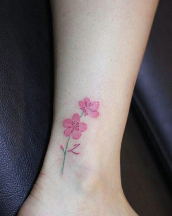 清新小桃花脚踝纹身_脚部纹身图案大全_纹身图吧