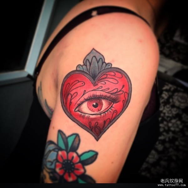 大臂school爱心眼睛彩绘纹身图案