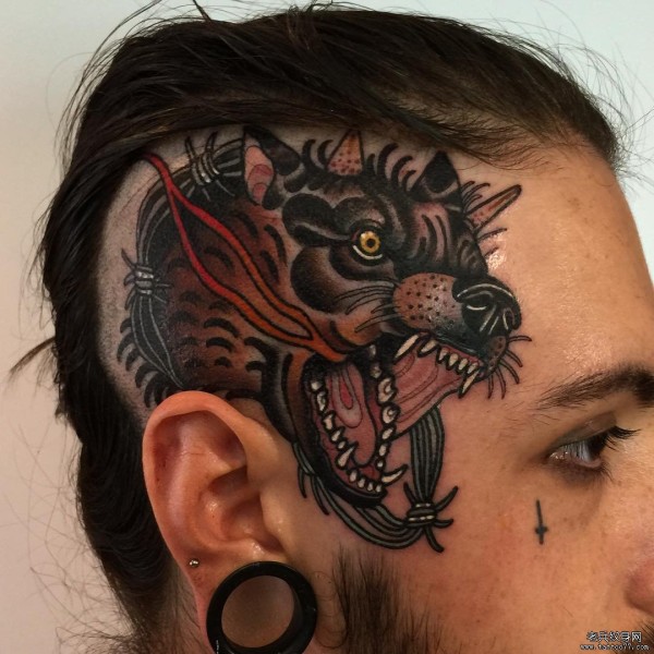 男生头部帅气时尚的狼头纹身图片_头部纹身图案大全_纹身图吧