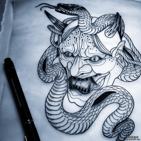 能面万媚纹身手稿_52张日式能剧面具纹身手稿图案素材欣赏