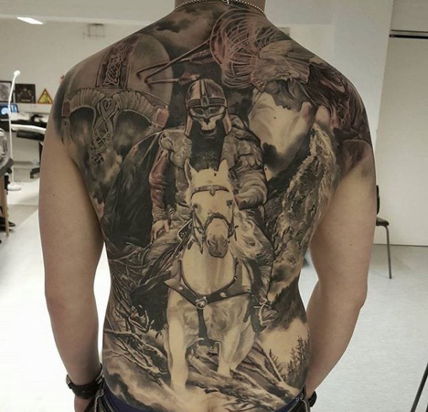 男性喜爱的黑灰色大胆花腿纹身时尚花臂纹身图案
