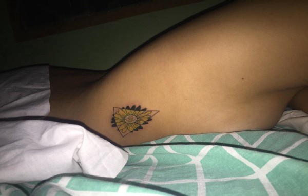 臀部右侧小清新植物纹身菊花上纹身三角形纹身图片