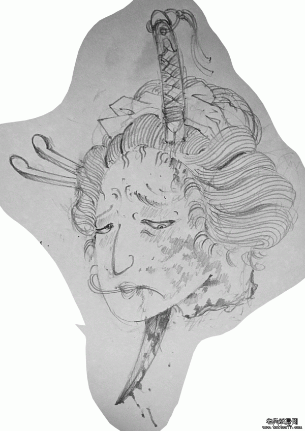 能面万媚纹身手稿_52张日式能剧面具纹身手稿图案素材欣赏
