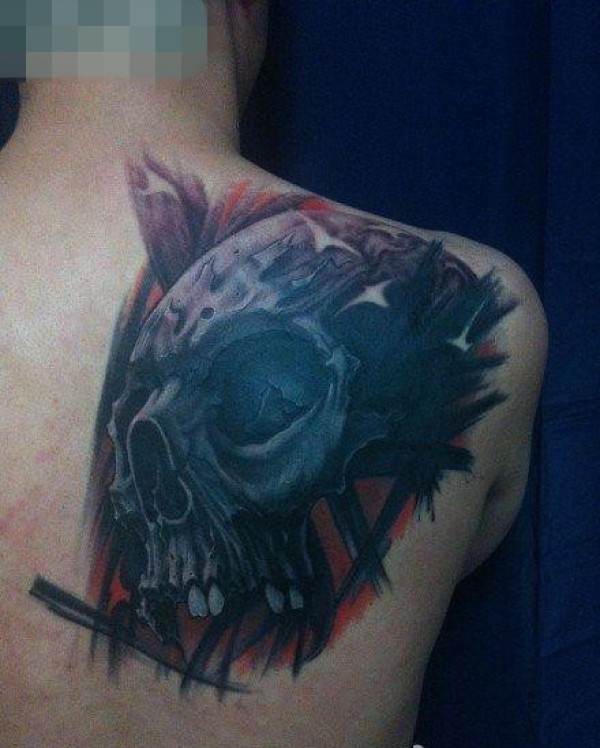 男生肩背超酷帅气的欧美骷髅纹身图案