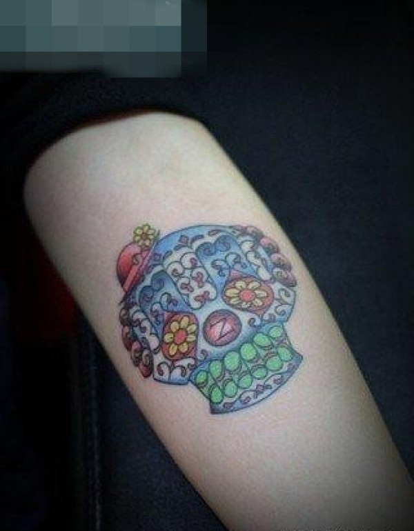 女生手臂时尚的欧美风格的骷髅纹身图案