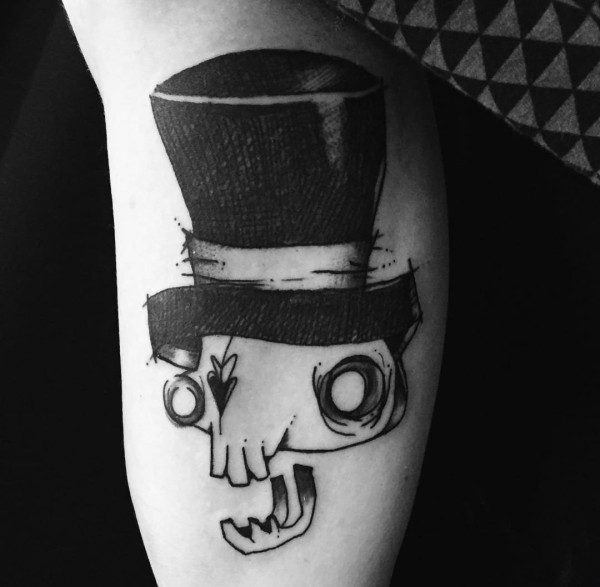 男人大臂黑白彼岸花骷髅_黑白纹身图案大全_纹身图吧