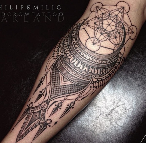 黑色神圣的立体几何梅塔特隆立方体纹身图案