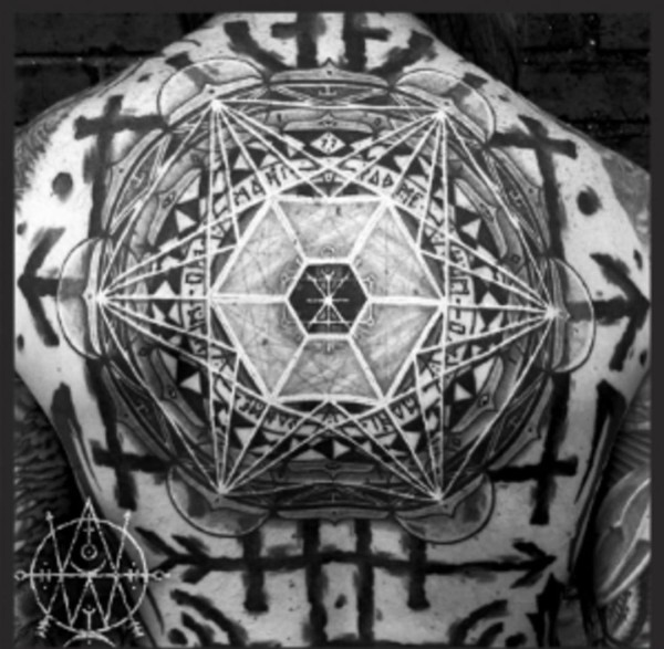 黑色神圣的立体几何梅塔特隆立方体纹身图案
