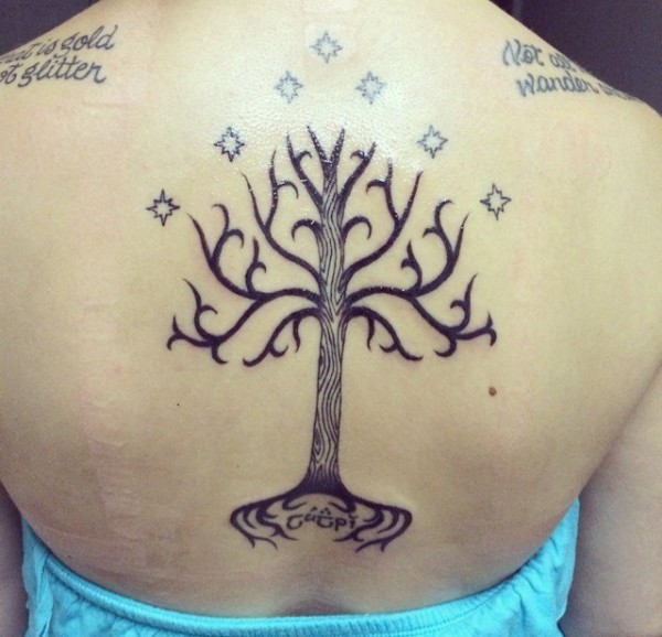 美女后背性感的大树图腾纹身图片