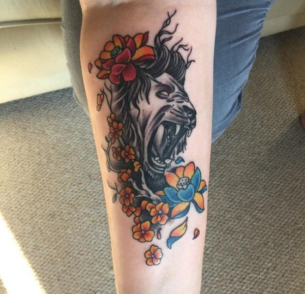 手小臂上帅气的各种狮子纹身图案