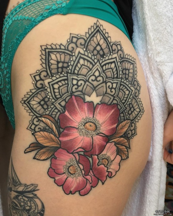 大腿梵花欧美花卉个性纹身图案