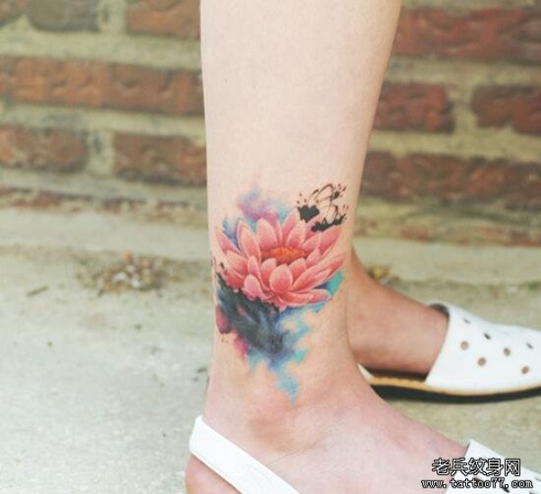 分享一款脚踝莲花纹身图案_脚部纹身图案大全_纹身图吧