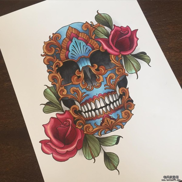 欧美school嘎巴拉玫瑰纹身图案手稿