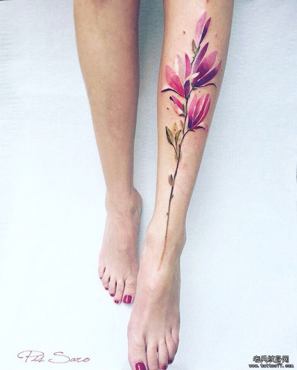 清新花朵腿部纹身图案图片_植物纹身图案大全_纹身图吧
