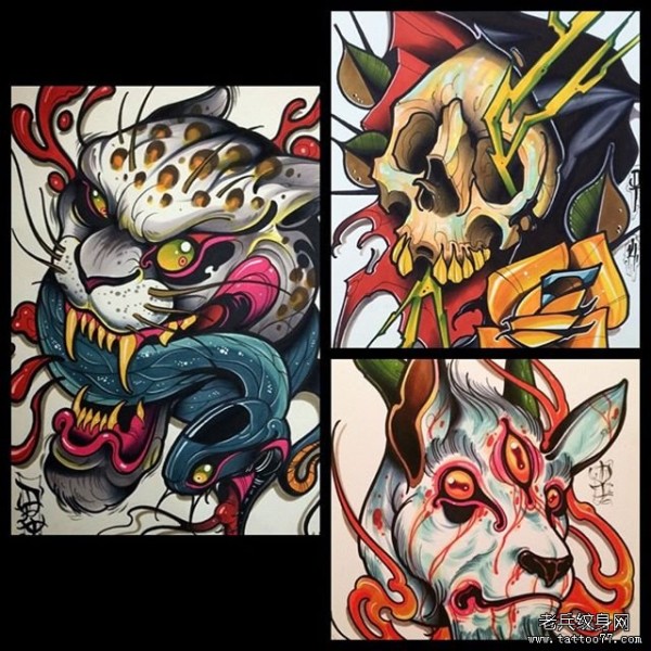 一组18张漂亮的欧美newschool动物纹身手稿图案