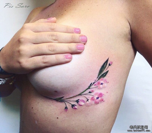 后肩唯美花藤英文图案图片_植物纹身图案大全_纹身图吧