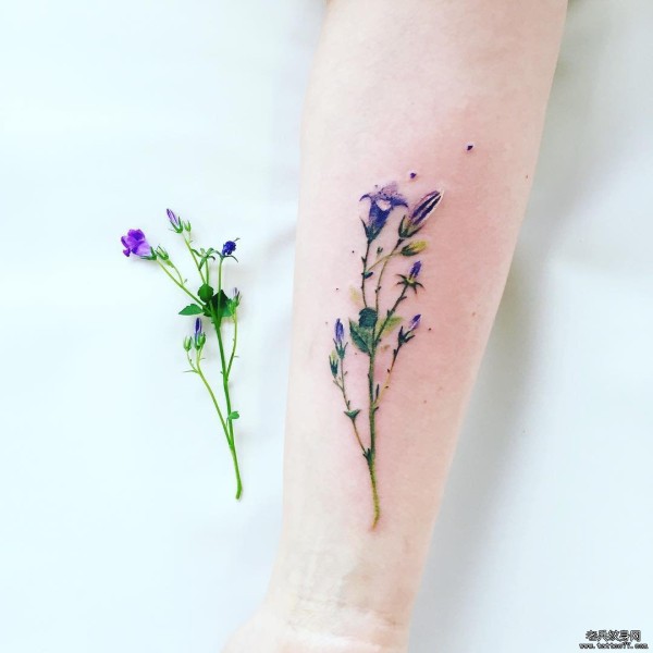 小臂彩色小清新植物花卉纹身图案