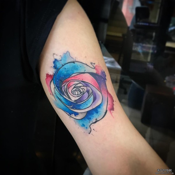 大臂玫瑰漂亮的泼墨纹身图案