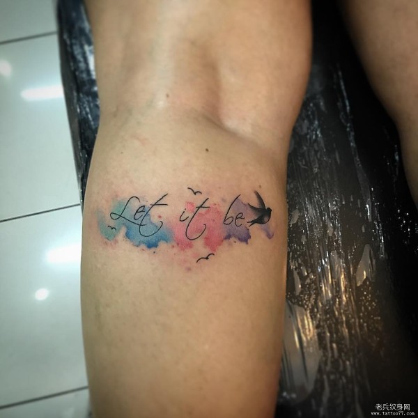 小臂字母泼墨鸟儿纹身图案