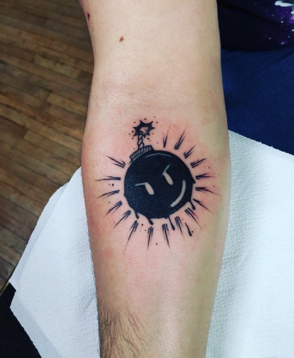 手臂上可爱的黑色炸弹卡通纹身小图片