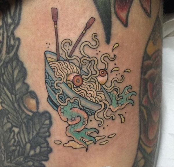 疯狂的彩色拉面和奇怪的海洋小动物食物纹身图案
