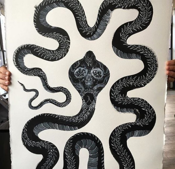 龙纹身手稿_一组老传统黑灰龙手稿纹身图案