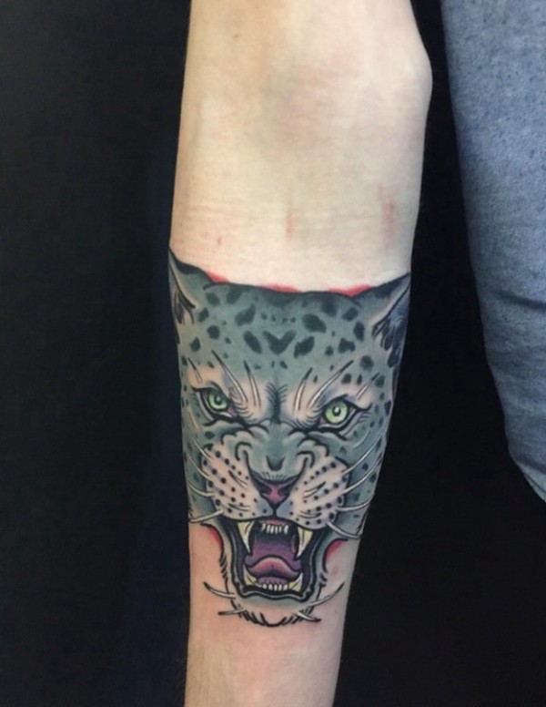 手臂上邪恶的小灰猫脸纹身动物纹身图片