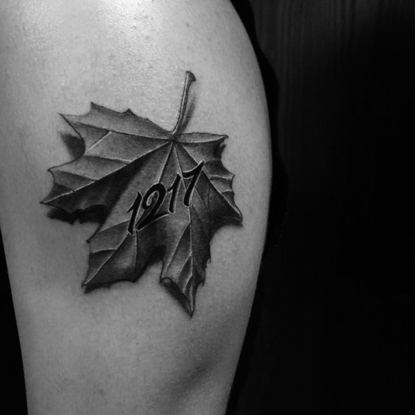 手臂3d效果枫叶纹身图案