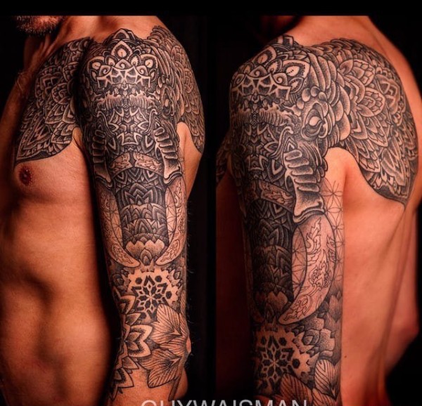 黑色的时尚花臂纹身点刺技巧几何纹身图案