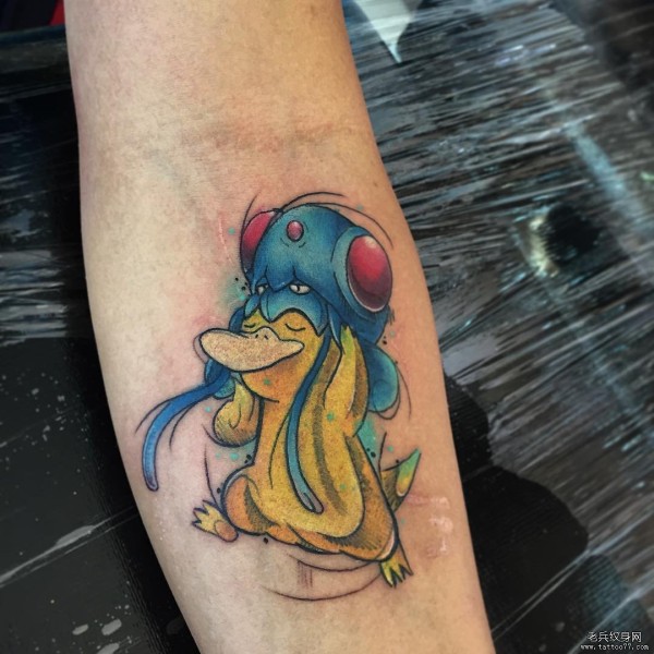 小臂卡通神奇宝贝鸭子水母纹身图案