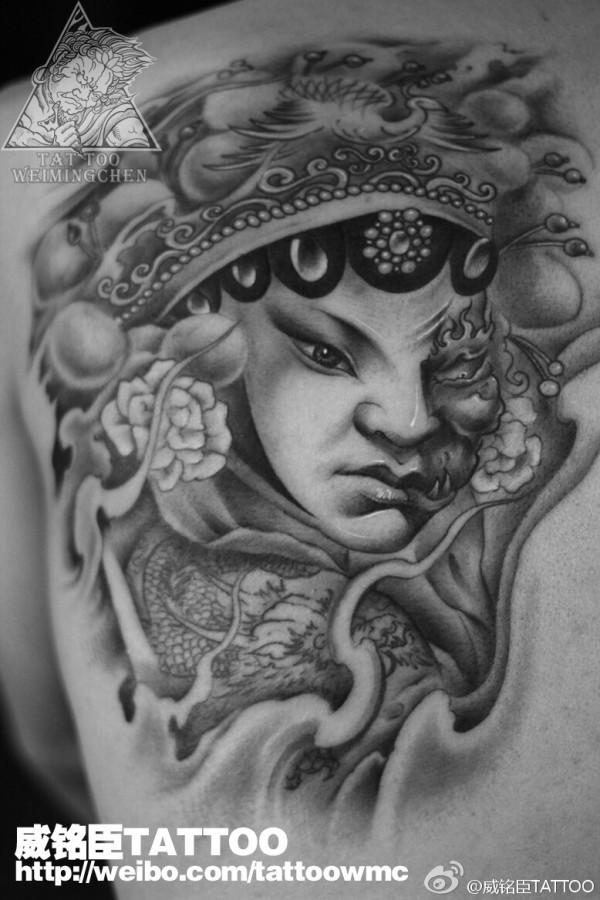 能面万媚纹身手稿_52张日式能剧面具纹身手稿图案素材欣赏