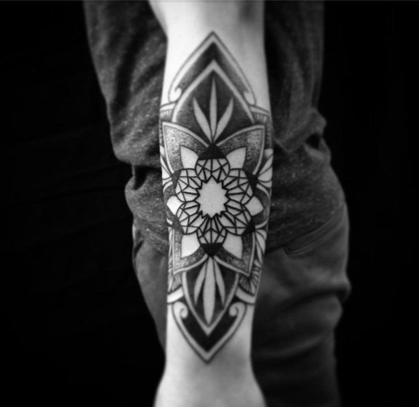 手小臂上的黑色装饰风格几何图形曼陀罗纹身图片