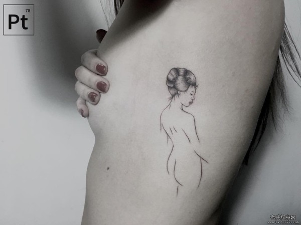 女生后腰纹身黑白灰风格抽象线条纹身图案