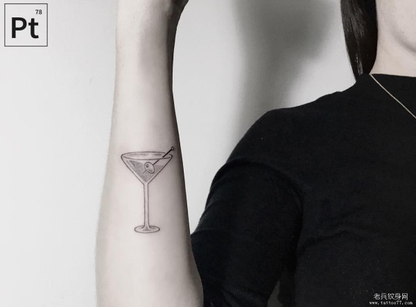 小臂小清新线条点刺酒杯纹身图案
