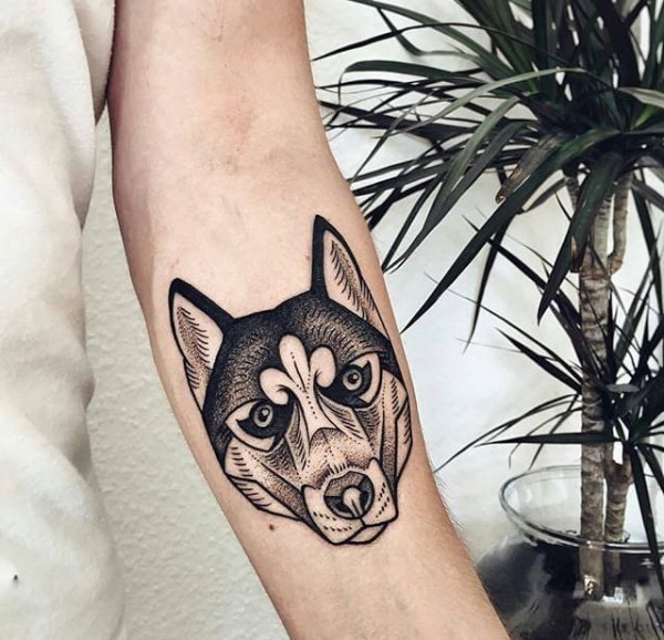 13款可爱的宠物狗纹身动物哈士奇肖像纹身图案